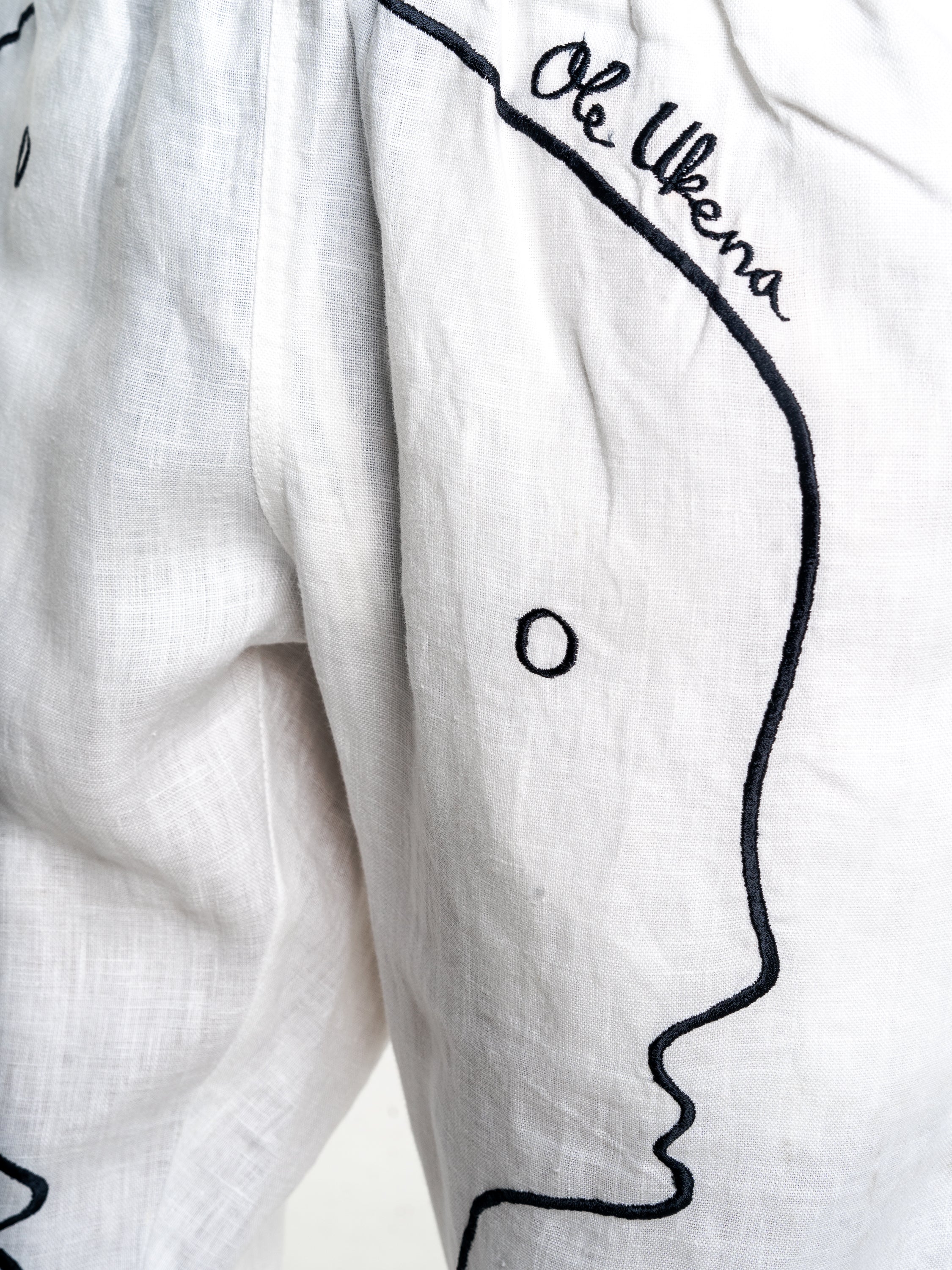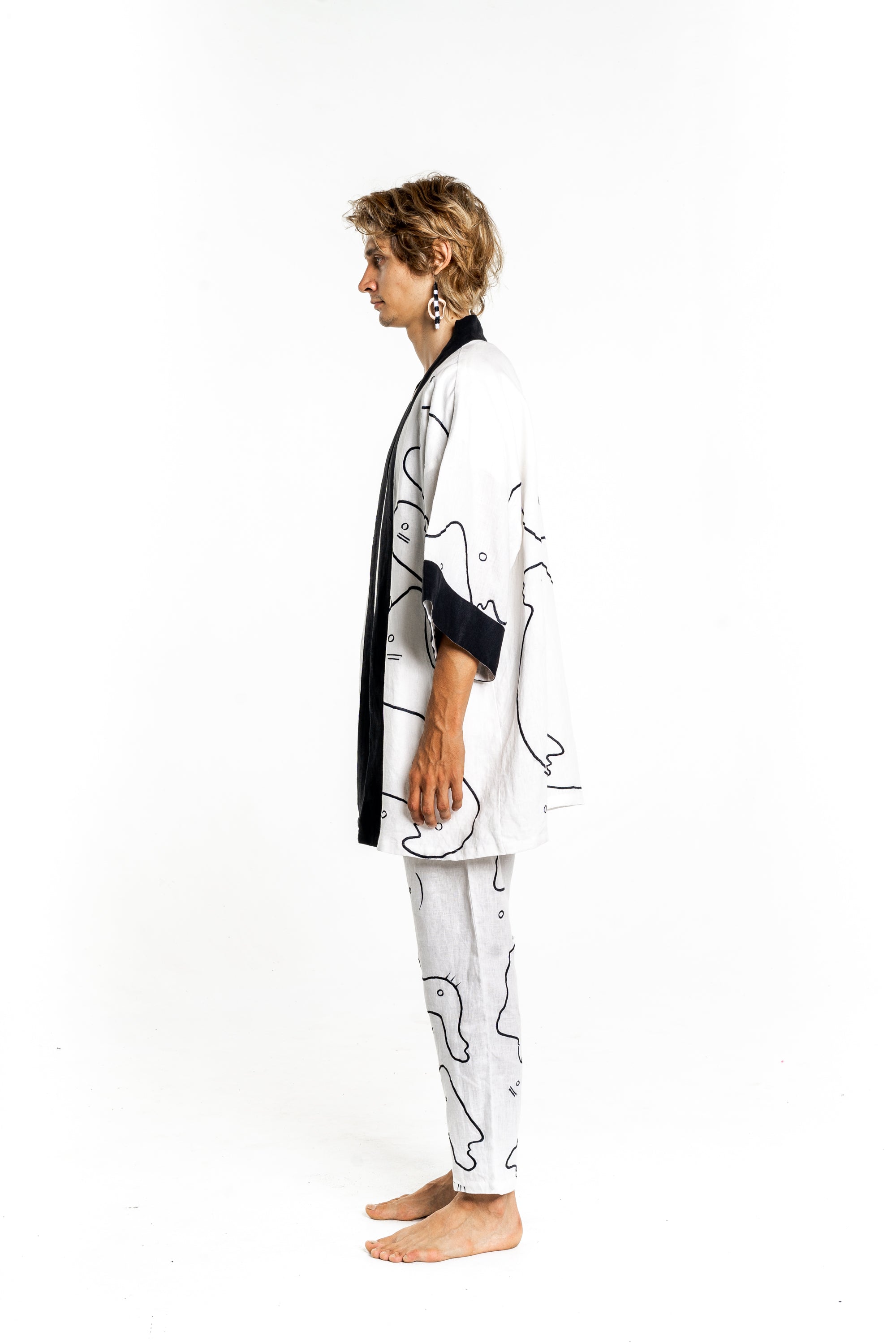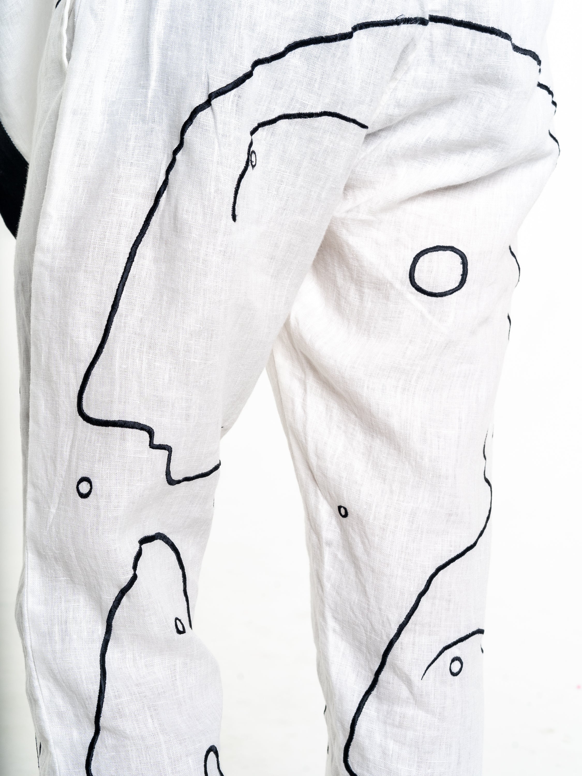 Cosmic contrast. Cartoonish clarity. A linen portal disguised as an outfit.
